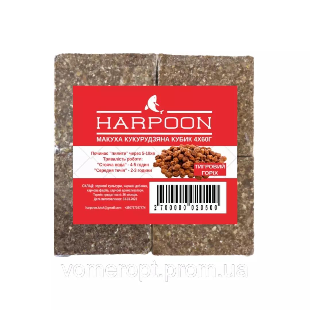 Макуха HARPOON Кукурудзяна кубик 4шт*60г Тигровий Горіх (36шт в ящ)